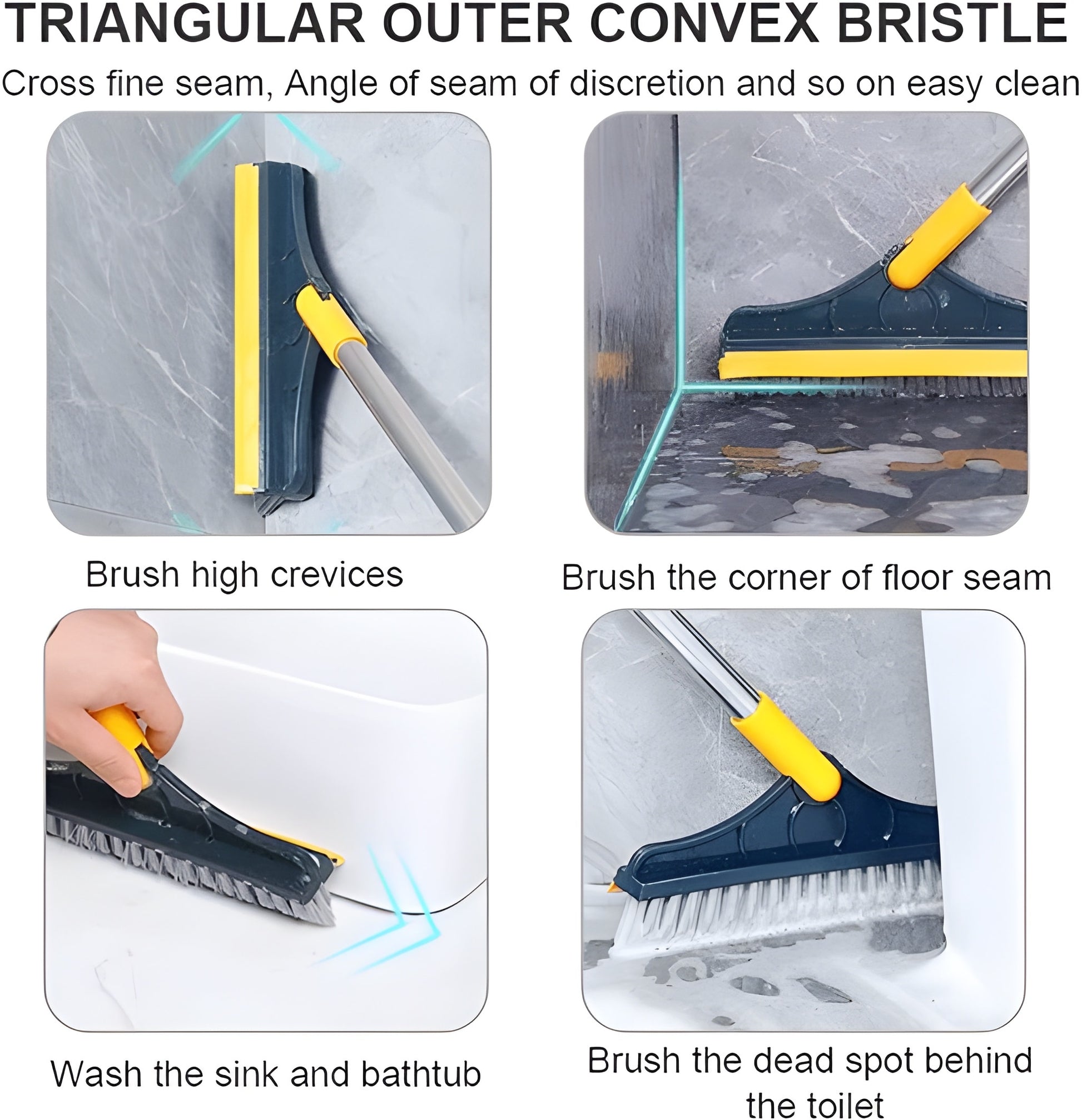 - V-SHAPED HARD BRISTLE: Our tile cleaner brush is designed in V-shape stiff bristles, it is special for cleaning those hard-to reach corners, cross grout, gaps and crevices in bathroom and kitchen. The tile grout brush fits easily to the grout lines(corners, tight spots, etc.), cross crevices, high and low gaps, corners, etc. and effectively remove the stains stubborn dirt, dirty water, and dust on the ground or wall without damage the wall.