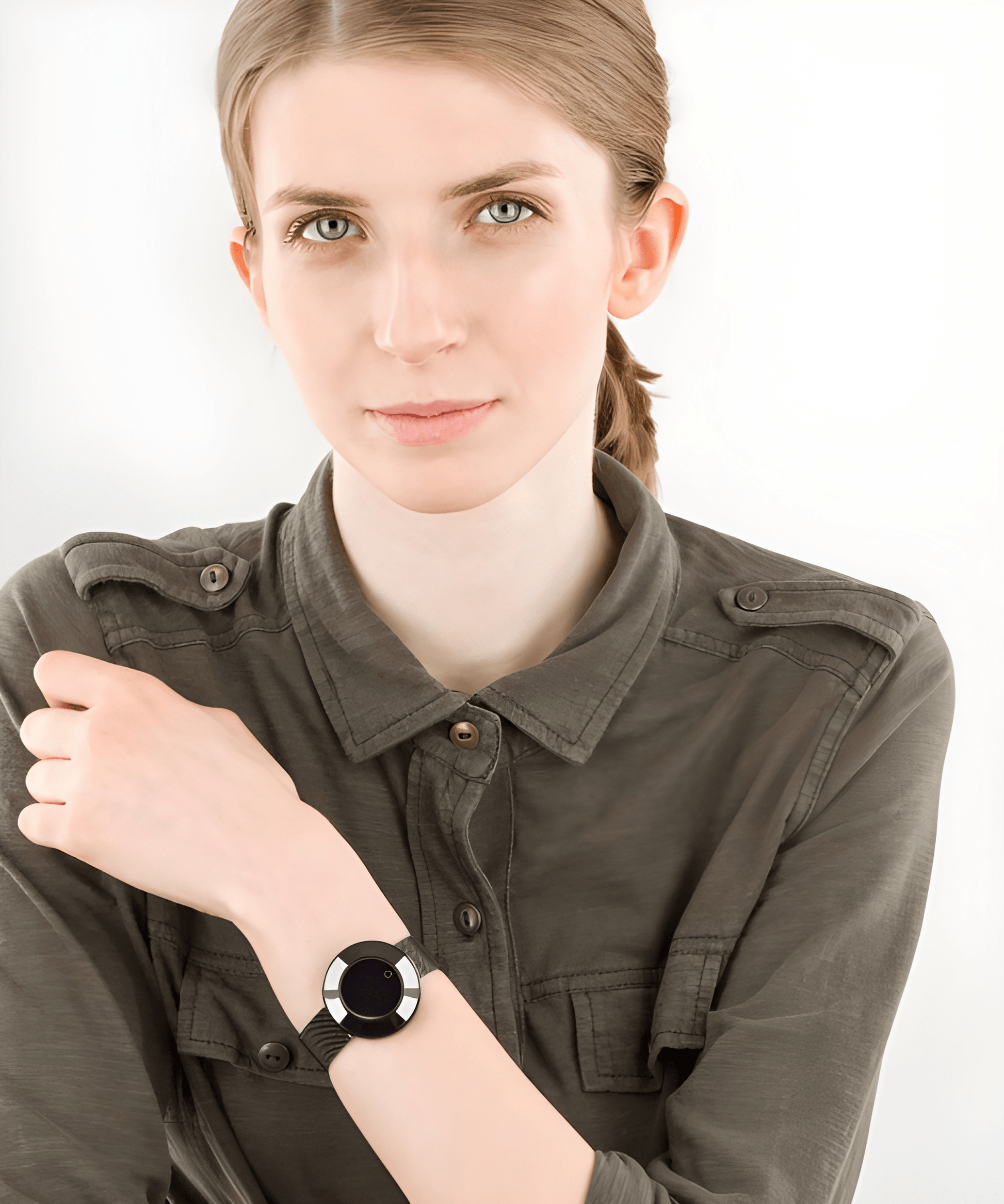 Stay stylish while staying connected with this Ladies Smart Watch. Designed with a sleek round touch display and a premium mesh strap, it combines fashion with functionality. This smart watch allows you to track your daily activities, time, and notifications while adding a sophisticated look to your outfit. Lightweight, comfortable, and versatile, it’s perfect for both casual and formal wear. Whether at work, in meetings, or on a night out, this watch is the perfect companion for the modern woman.